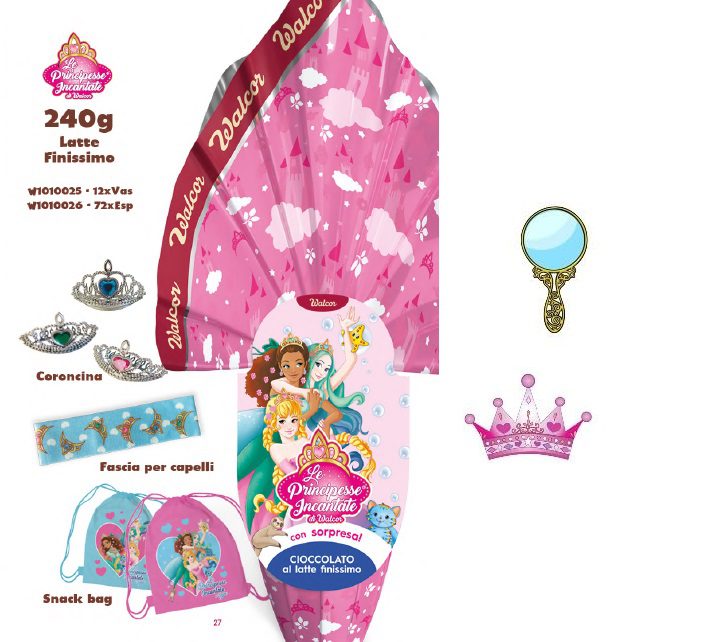 Uovo di Pasqua cioccolata a latte Walcor Uno gr 240con o senza magnete Principesse Incantate
